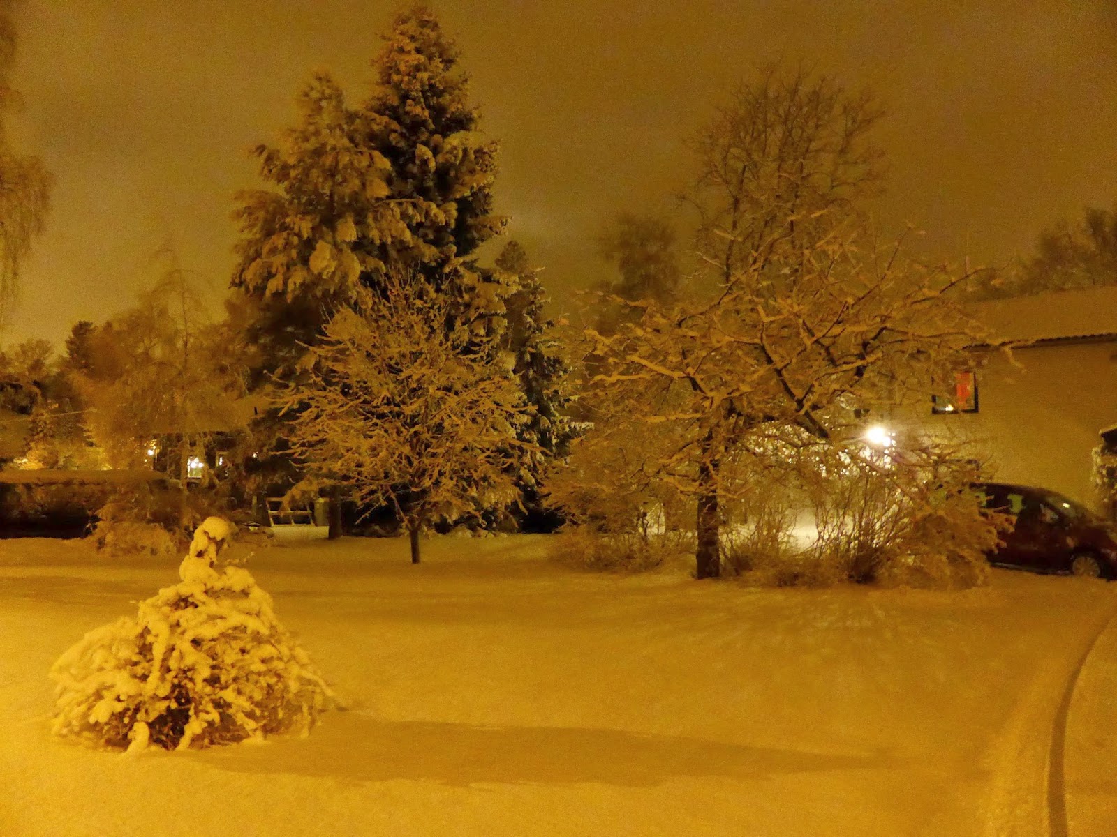 Igår kväll yrde snön ordentligt och det såg ut så här, när jag kom hem från jobbet, 10cm snö!