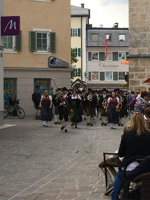 Vi tog cyklarna och trampade in till stan via Zeller See med de majestätiska bergen i bakgrunden.