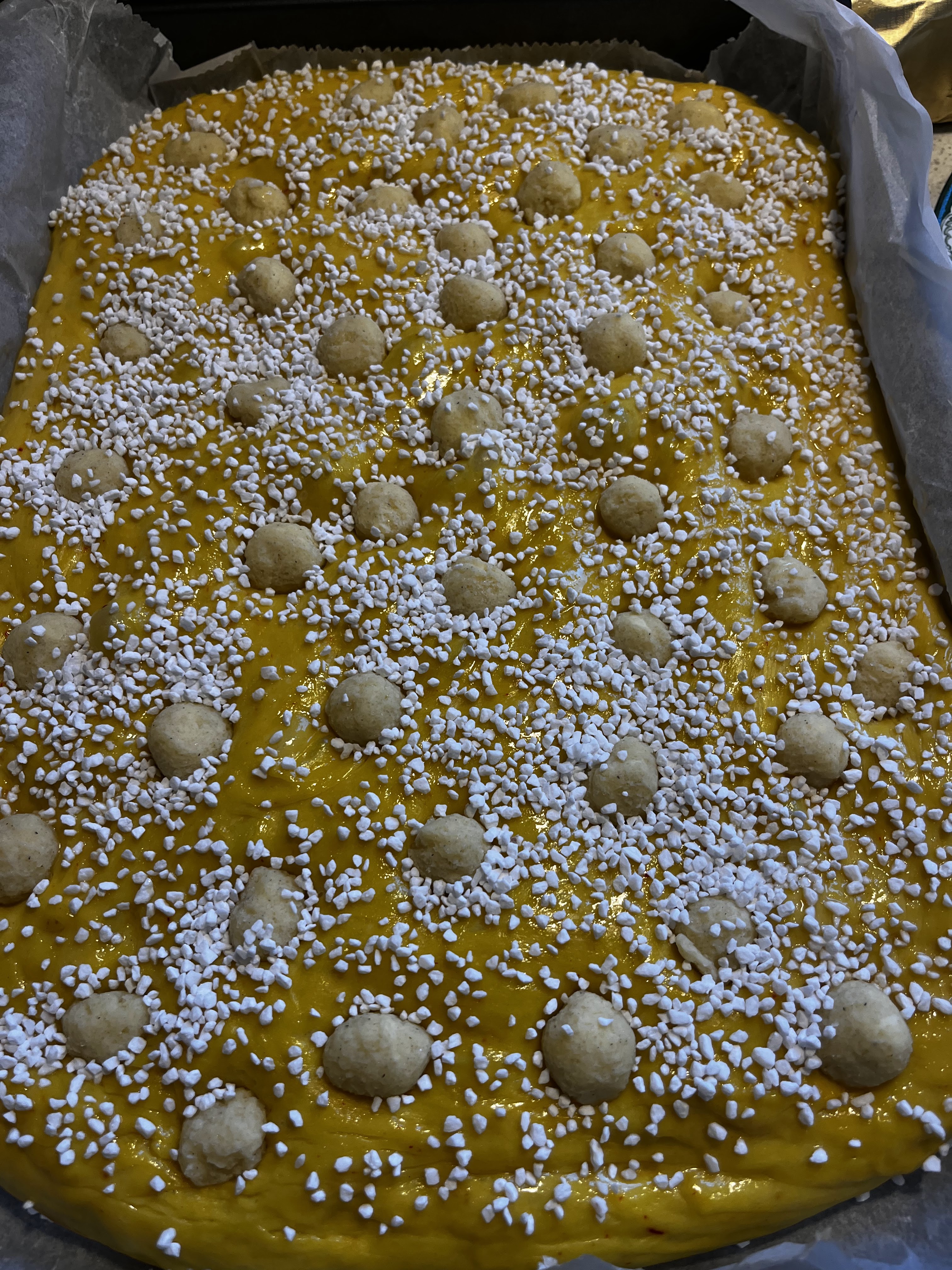 Det här är smörbollarna. Jag använde plasthandskar när dom rullades, men gjorde inte 54 stycken som det står i receptet.